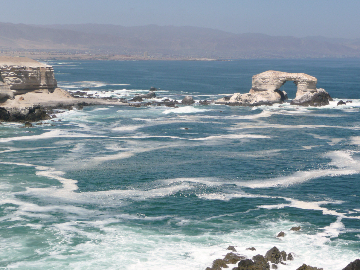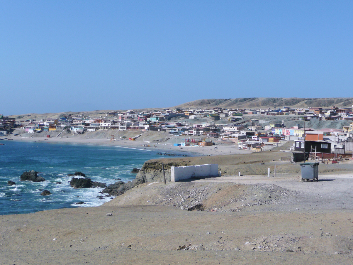 Spazieren an den Strand, wo sich Bigi im Pazifik ein kaltes Bad genehmigt. Kaspar sitzt auf dem Bademeister-Hochsitz und verfolgt das Geschehen am Strand und im Meer. Er findet, dies wäre noch ein Job für ihn. Kurz vor der Hauptstrasse Nr. 1 besuchen wir das ‚Monumental National La Portada‘, ein grosses Felsentor im Meer. Die Aussichtsplattform ist grosszügig angelegt, aber es hat nicht viele Besucher. Weiter nach ‚Mejillones‘, einer kleinen Hafenstadt mit Fischerhafen. Hier gibt es ein grosses thermisches Elektrizitätswerk, welches die Minen im Inland mit Strom versorgt. Stehen an der Strandpromenade und faulenzen.