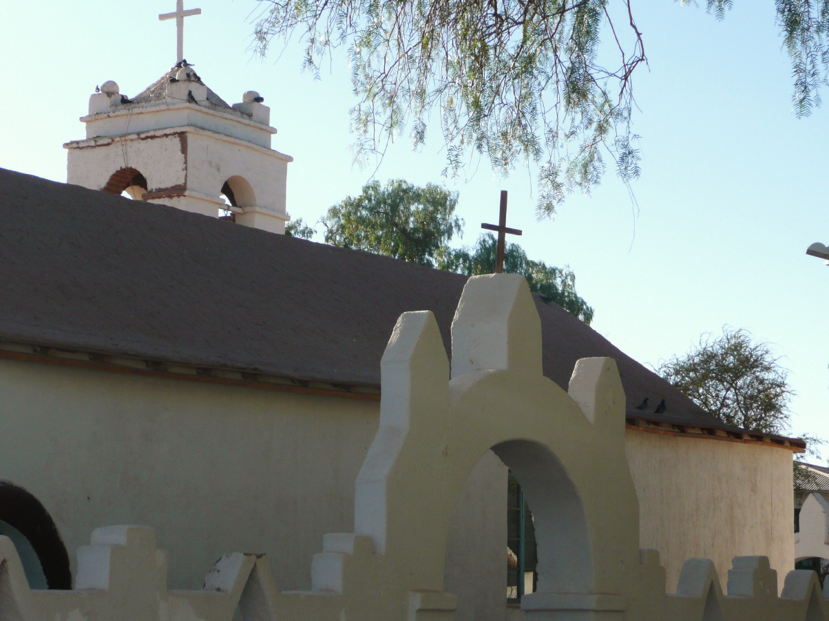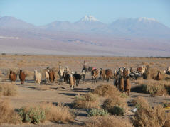 Haben beide nicht sehr gut geschlafen und sind daher schon um 8 Uhr auf der Strasse. Der Pass steigt unaufhörlich an. Die argentinische Zollabfertigung geht schnell. Weiter steigt die Strasse bis auf 4825 m. Auch in dieser Höhe geht es uns beiden gut. Vom höchsten Punkt aus geht die Strasse in fast gerader Linie steil hinunter bis nach San Pedro de Atacama. Die LKWs fahren sehr, sehr langsam und es gibt viele gekieste Notbrems-Ausweichspuren. Die chilenische Zollabfertigung in San Pedro ist etwas konfus. Machen alles verkehrt. Zuerst den Zoll statt die Polizei. Der erste Eindruck von San Pecro de Atacama ist nicht gerade erfreulich. Erst das Stadtzentrum um den Hauptplatz ist schön restauriert und für die vielen Touristen aufgepeppt. Suchen Imbers Hotel und hinterlassen eine Nachricht. Erkundigen uns vor dem Nachtessen für eine Fahrt nach Bolivien zu der Lagune Verde. Dieser Fahrt würde bis über 5000 m gehen, und dies wollen wir Walti nicht antun. Im Stadtzentrum treffen wir die Holländerfamilie mit den 3 Kindern wieder und schwatzen. 4 km ausserhalb gibt es einen Camping, den wir nun ansteuern. Mitten in der Wüste ein Akazienwald mit vielen Assado-Grillplätzen und einem grossen Schwimmbad. Hier holen wir den von Dreck kaum mehr zu erkennenden Roller hinunter. Wie immer springt der Motor sofort an. Nach dem Reinigen des Rollers sind wir beide so schmutzig, dass wir ein Bad im Pool brauchen. Siesta. Müssen etwas vorsichtig mit unserem Wasser umgehen, da es hier kein ‚Agua Potabile‘ (Trinkwasser) gibt. In der kühlen Abendbrise fahren wir mit dem Roller in die Stadt und treffen die Andern im Hotel zum Nachtessen.