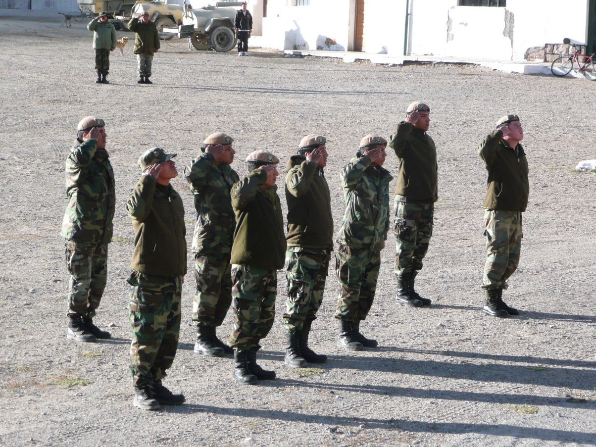 Haben wieder einmal wegen der Höhe - 3730 m – sehr schlecht geschlafen. Schlaftrunken schauen wir um halb neun Uhr auf den Exerzierplatz mit Fahnenmast. Die höheren Offiziere sind angetreten und begrüssen ihren Oberst mit einem gemeinsamen, lauten ‚buon dias, jefe‘. Dann wird die argentinische Flagge gehisst. Kaspars Kommentar: ‚so eine morgendliche Begrüssung wünsche ich mir ab heute auch von dir.‘