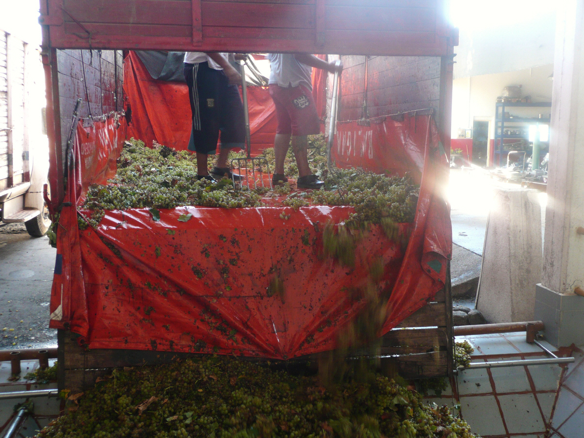 Die ‚Questa de Mirande‘ entpuppt sich als kleiner, aber enger Pass von 2020 m Höhe. Die Fahrt geht durch grüne Berglandschaft. Ein kurzes Stück die Route 40 Richtung Norden nach Chilecito. Hier besuchen wir die Wein-Cooperativa ‚La Riojana‘. Besichtigen die riesige Halle mit den Weintanks. Die Traubenernte ist in vollem Gange. Viele Lastwagen, beladen mit Trauben, warten bis sie dieselben abliefern können. Degustieren diverse Weine welche hervorragend sind. Kaufen je drei Flaschen Weiss- und Rotwein für unseren fahrenden Weinkeller. Somit ist dieser aufgefüllt für die nächste Reise. Es gibt hier auch eine Materialseilbahn von 34 km Länge. Da bei der Mine kein Wasser vorhanden war, musste alles goldhaltige Gestein ins Tal gefahren werden. Heute ist alles ausser Betrieb, aber man kann die Bahn aus dem Jahre 1903 besichtigen (Höhenunterschied von 3300 m) – wir müssen bei 35 Grad C 15 Minuten den Berg herauf steigen, uf schwitz! Über schnurgerade asphaltierte Strasse geht es Richtung Cordoba. Es ist eine langweilige und heisse Fahrt. Nun stehen wir in Chamical an der Strasse und haben wahrscheinlich die lauteste Ecke des Städtchen erwischt. Parkieren noch um hinter die Tankstelle an der Hauptstrasse. Wir werden ja schlafen oder hören!