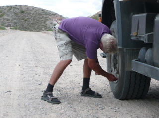 Nach der Bremsreparatur sehen wir ihn am Strassenrand wieder, wo er gerade seinen Jeep Jg. 1960 reinigt. Nach kurzem Palaver wird er die Reparatur um 15 Uhr ausführen. Also zurück zum Camping. Da es schlechtes Wetter ist laden wir die zweite Batterie mittels Generator auf.