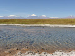 Am Morgen müssen wir ziemlich lange an der Hauptstrasse warten, da uns Walti nicht findet. San Pedro de Atacama ist etwas kompliziert, da die Stadt unkontrolliert wächst. Im Valle de Lune bezahlen wir Eintritt und bekommen dafür auch noch einen schönen Prospekt. Walti ist begeistert und fotografiert viele Sujets. Auch Kaspar versucht einiges mit seinem Fotoapparat, aber wenn er Waltis Bilder sieht, vergeht im die Lust am Fotografieren. In der Stadt essen wir beim Busbahnhof in einer kleinen Imbissbude Pollo und fahren dann zur Laguna Cejar. Walti flippt aus, der schneebedeckte Vulkan im Hintergrund wird x-mal abgelichtet. Bigi nimmt ein Bad in der Salz-Lagune. Sie kann nicht versinken, dafür ist sie anschliessend gepökelt. Es beisst und juckt überall. Am Abend dann in einem schönen, rustikalen Restaurant mit offenem Feuer Abendessen. Es heisst Abschied nehmen von Walti, Madeleine und Fridolin. Die Drei bleiben noch hier und wir werden morgen weiterziehen.