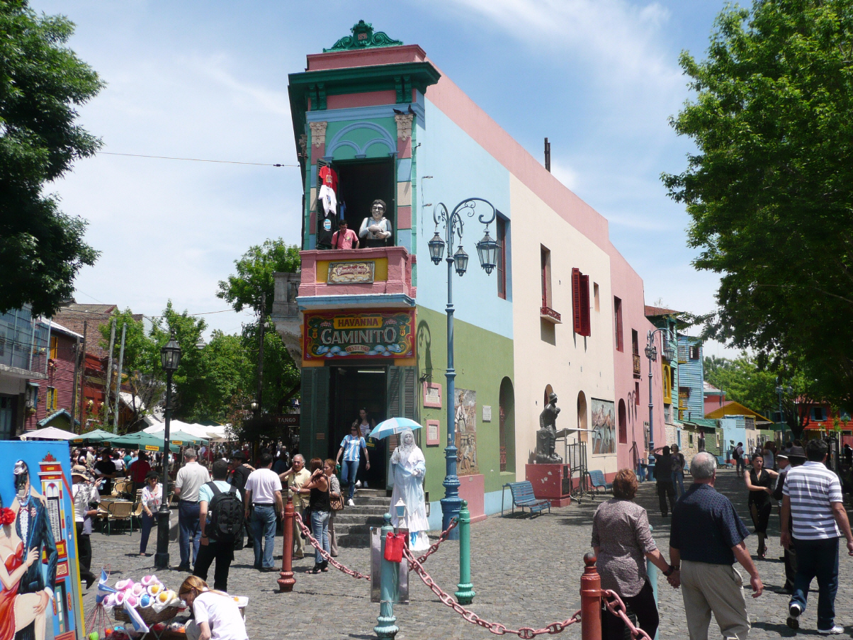 Gestern hat es mit dem Aufladen der Homepage nicht geklappt. Daher machen wir einen zweiten Versuch. Taxi zum Teatro Colón, um Tickets für morgen zu erstehen. Leider alles ausverkauft. Werden morgen versuchen, kurz vor der Vorstellung, Tickets auf der Strasse zu kaufen für die Philharmonie Buenos Aires. Weiter nach ‚La Boca‘, dem früheren Italienerviertel mit den farbenfrohen Häusern. Hier wimmelt es von Touristen. Werden immer für alles Mögliche angequatscht, was Bigi gar nicht liebt. Trotzdem schauen wir fasziniert dem bunten Treiben zu. Die alten Häuser sind alles Souvenirläden, Galerien und Restaurants. Ganz anders als wir dies das letzte Mal sahen. Mit dem Bus Nr. 29 fahren wir zurück zum Plaza de Mayo. Eine Fahrt kostet pro Person 1.20 Pesos (30 Rappen). Die Fahrt kann man aber nur mit Kleingeld bezahlen, welches wir gerade vorher als Trinkgeld weggegeben haben. Ein Argentinier schenkt uns 3 Geldstücke.