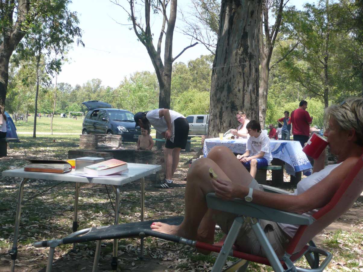 Ab Richtung Lobos, wo wir den Campingplatz mit der Möglichkeit eines Einstellplatzes für den MAN besichtigen wollen. Über die Autobahn Richtung internationaler Flughafen verlassen wir Buenos Aires. Die grossen Strassen sind nicht gratis und kosten uns 11 Pesos. Wie üblich nach einigem Suchen finden wir den Camping an der Laguna di Lobos, am See. Es ist ein Freizeitpark mit kleinem Laden und vielen, vielen Feuerstellen für das Asado der Argentinier. Es herrscht ein buntes Treiben und die Argentinier sonnen sich, spazieren und vor allem essen sie viel und üppig gegrilltes Fleisch und Wurst, schlicht ‚Asado‘. Treffen Max und Heidy aus dem Tessin, welche mit ihrem MAN-Wohnaufbau Schwierigkeiten haben. Derselbe ist gerissen. Die Zwei nehmen es gelassen. Besuchen uns bereits am ersten Tag gegenseitig zum Apéro und Kaffee.
