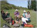 Schauen beim Kaffee noch einmal den vielen Walen zu. Es tummeln sich etwa 12 Paare in der Bucht. Leider sind sie etwas weit weg, sodass Kaspar keine wirklich guten Fotos schiessen kann. Aber dennoch ein gutes Schauspiel. Weiter geht es auf der Route 3 nach Trelew und von dort ein kurzes Stück die Nr. 25 ins Landesinnere nach dem walisischen Dorf ‚Gaiman‘. Dort gibt es typisch englische Teehäuser, wo wir im netten Lokal 'Casa de Te Gales' so richtigen ‚englisch Tea‘ mit div. selbstgebackenen Kuchen geniessen; alles hausgemacht. Der Wirt erzählt uns Einiges über die Region und sagt uns auch, dass die Schweizer Botschafterin Carla del Ponte vor ca. 4 Monaten bei ihm zu Gast war. Durch ‚Gaiman‘ führte auch einmal eine kleine Eisenbahn. Ein Tunneleingang kann man noch heute besichtigen. Zurück nach Trelew und Richtung Meer nach Playa Union. Hier suchen wir ‚Anna‘, eine Freundin unserer Spanischlehrerin Patrizia. Wir haben sie kurz vor unserer Abreise noch in Solothurn getroffen. Sie sagte uns, dass wir sie ganz einfach finden: ‚Anna, die in der Heladeria (Eisdiele) arbeitet.‘ Nach mehrmals fragen checken wir die Email und bekommen auch die Auskunft, dass sich die Heladeria Venezia in Trelew befindet. Da können wir ja noch lange suchen, und es liegt nicht an unseren Spanischkenntnissen. Campen am Strand und schauen den Wellen zu.