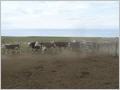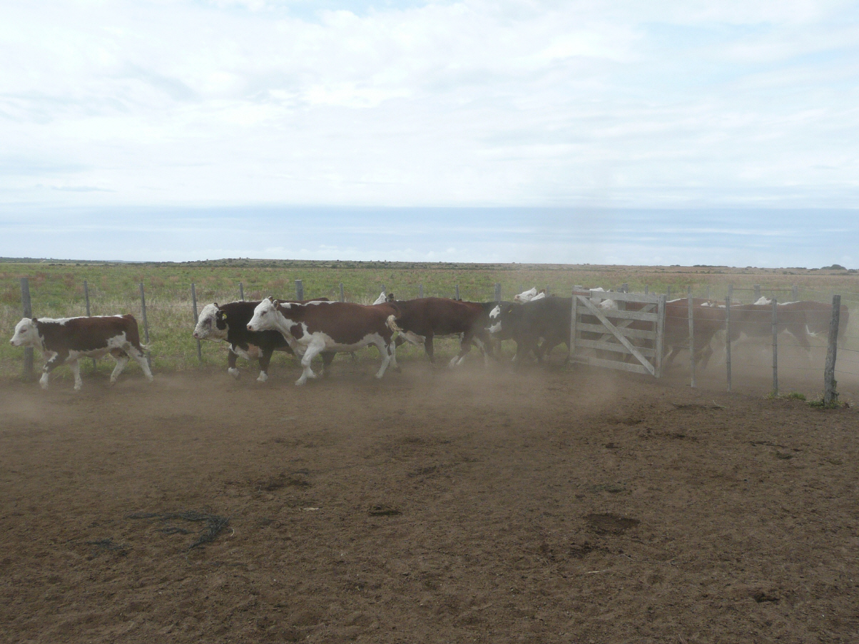 Die Bullen haben tausende von Fliegen auf dem Rücken und Eduardo behandelt diese mit einer chemischen Flüssigkeit. Die Augen sind entzündet und er sprayt sie mit einer violetten Flüssigkeit ein. Dazu werden die Köpfe der Bullen mit einer speziellen Holzvorrichtung eingeklemmt. Nachher wird die kleine Herde mit den Bullen auf die unendliche Weide zurück getrieben. Ein Gaucho, welcher auf der Farm lebt, ist immer dabei. Leider konnten wir Eduardo nicht als Gaucho auf dem Pferde bewundern. Das Leben hier war wirklich hart!