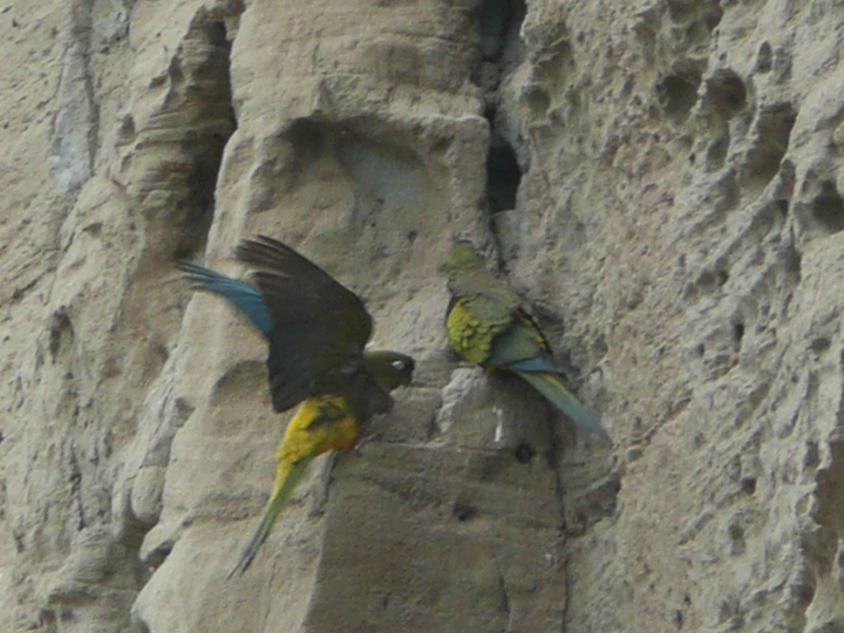 und die Papageien ‚Loro Barranquero‘, die immer paarweise ausfliegen und in Höhlen von bis zu 3 m Tiefe ihre Nester haben. Verabschieden uns von den Beiden. Über Wellblechstrassen bis zum Ende der Halbinsel zum ‚Punto Antonio Este‘.