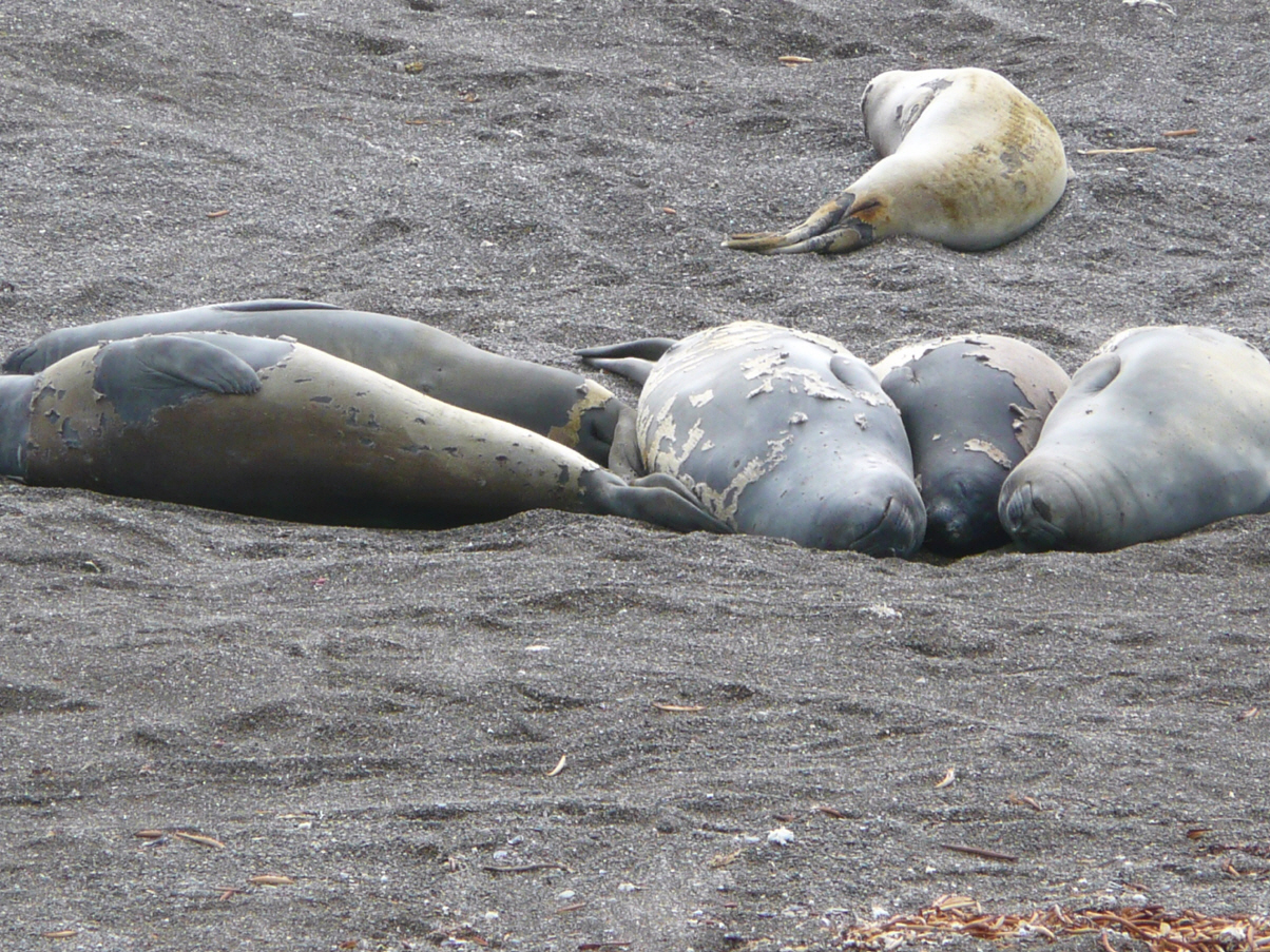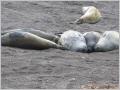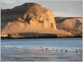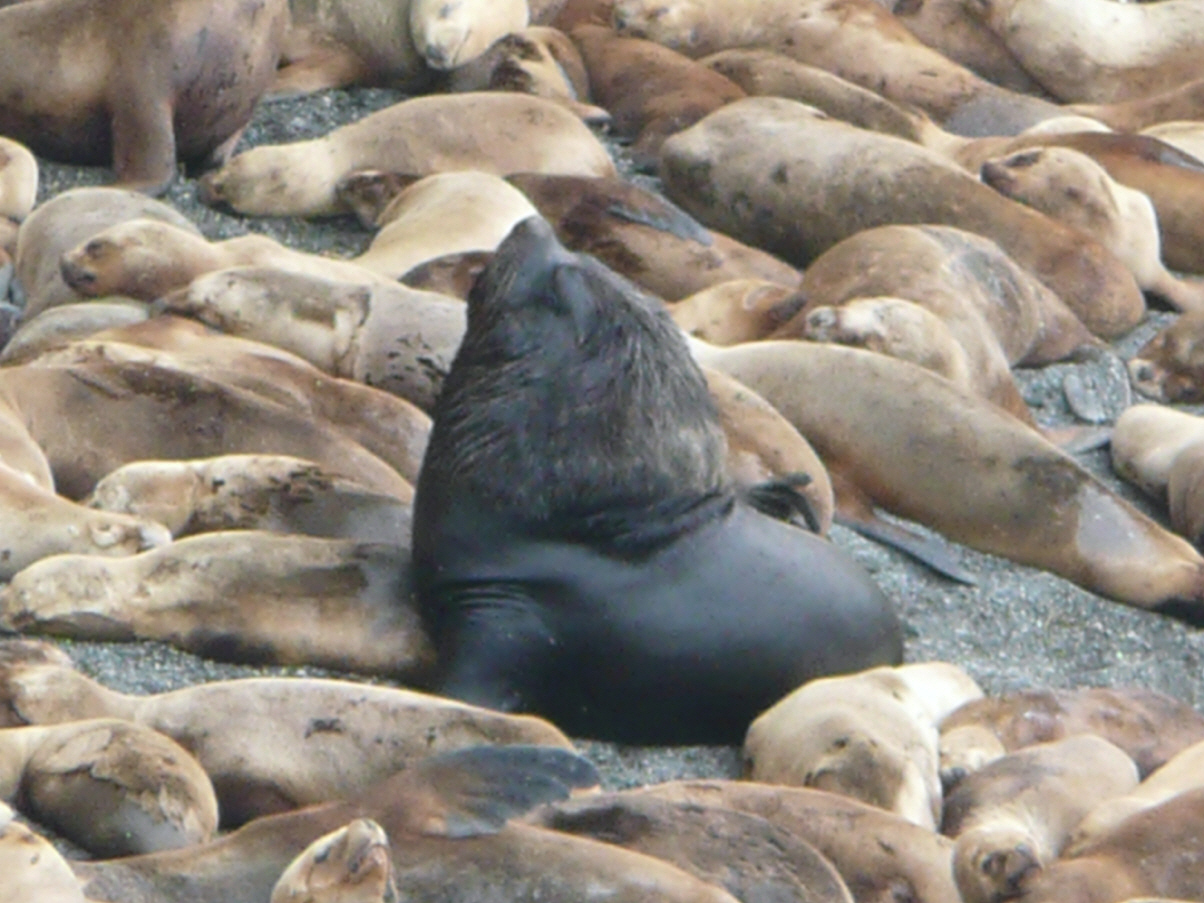 Der Wind hat nachgelassen, dafür ist es bedeckt. Verlassen den Camping früh, um ca. 8 Uhr am äussersten Punkt ‚Punta Norte‘ zu sein, wenn die Flut reinkommt. Ca. 75 km Schotterstrasse und Geschwindigkeitsbeschränkung 60 km. Vielleicht haben wir ja Glück und sehen hier Orcas (vor allem bei Flut zu sehen). Oh schade, die Orcas sind in den Ferien, bestaunen aber die einzige See-Elefanten-Kolonie Südamerikas.