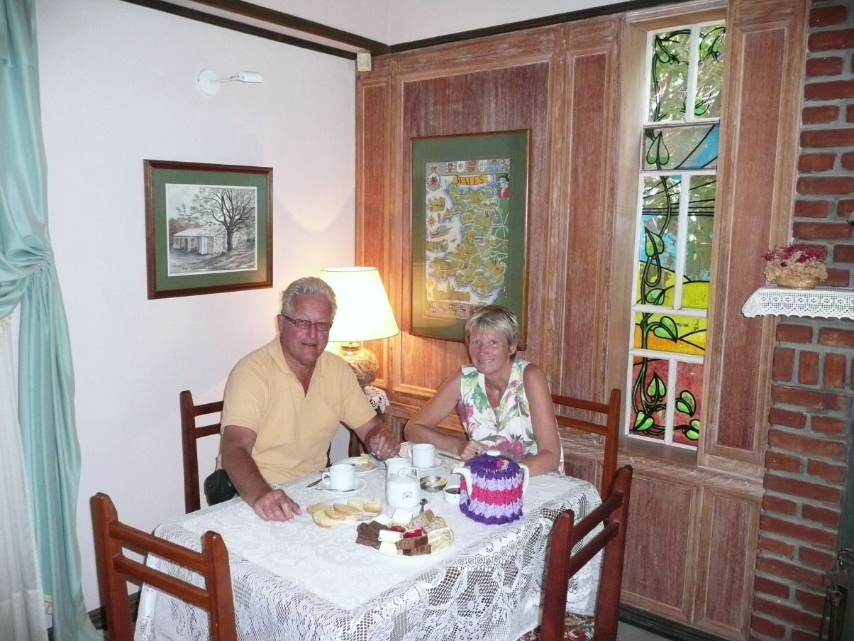 Treffen wohl den ‚verrücktestes Australier‘, der mit seiner Frau seit 7 Jahren die Welt bereist. Sie fahren einen selbstgebauten tiefliegenden Strand Buggy, Eigenmarke ‚Strange Rover‘! Das Fahrzeug besitzt keine Heizung und nur Seitenscheiben aus durchsichtigem Plexi-Tuch. Sie waren immerhin im nördlichsten Punkt in Alaska bei minus 26 Grad.