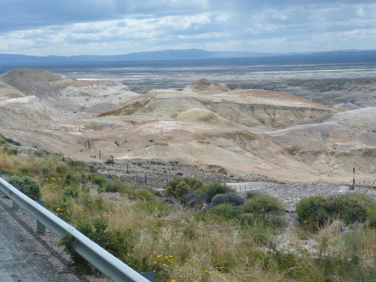 Auf dem Weg ins Landesinnere nach Sarmiento sehen wir hunderte von Oelpumpen. 30 Prozent des argentinischen Oelverbrauchs werden hier gefördert. Dadurch boomt die Stadt. In Sarmiento wollen wir die versteinerten Wälder besuchen. Beim 'Lago Musters' stehen wir am Wasser und lassen uns wieder einmal vom starken Wind durchschütteln. Schade, es wäre schön und warm, so richtig schöner, lauern Sommerabend und es ist bis 21 Uhr hell. Ohalätz, wir müssen noch um parkieren! Sind 5 m auf der falschen Seite des Drahtzauns und werden höflich, aber bestimmt dazu aufgefordert.