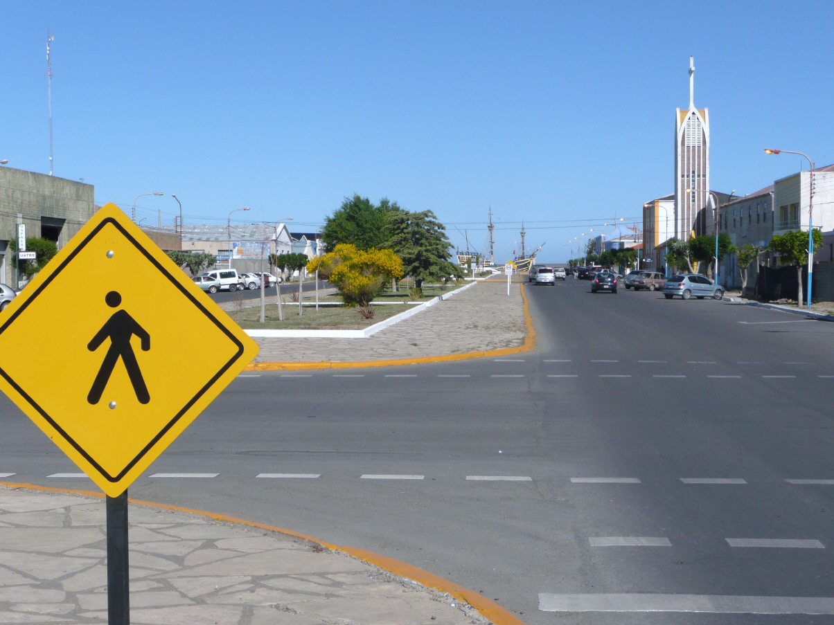 Homepage aufladen, Wasser auffüllen und ab auf die Route Nr. 3 Richtung ‚Puerto San Julian‘. Wir befinden uns auf einer sehr langen Strecke zwischen zwei grossen Städten und kreuzen fast nur LWSs. Übrigens wie beim Töff fahren: jeder grüsst jeden mit Handzeichen. Kurz vor dem Ziel erwischen wir eine kleine Schotterpiste und fahren 35 km der Küste entlang. Auf den ersten Blick macht ‚Puerto San Julian‘ einen guten, sauberen Eindruck. Die überbreite vierspurige Einfahrtstrasse und die Promenade am Meer entlang sind äusserst gut ausgebaut.