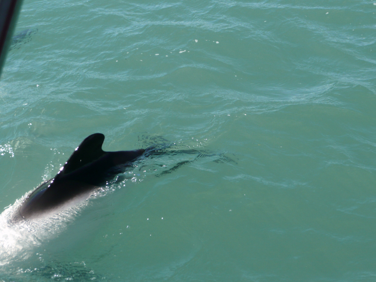 Zuerst zum Bäcker Brot einkaufen, dann zum Correo (Postbüro) Ansichtskarten aufgeben und neue 7-Peso Marken kaufen. Dann zum Exkursionsbüro um nachzufragen, ob nun heute ein Ausflug stattfindet, denn gestern war zu starker Wind. Mit dem Ausflugsboot ‚Pinocho Excursiones‘ zu den Pinguines auf der Insel und den Kormoranen. Diese sehen den Pinguinen sehr ähnlich, können aber gut fliegen. Endlich sehen wir auch schwarz-weisse Delphine ‚Toninas Overas‘. Sie werden nur etwa 1,1 m lang und sind hervorragende Schwimmer und Springer. Sie springen und reiten auf den Wellen unseres Bootes. Nur eines ist nicht gut: man kann sie fast nicht fotografieren. Kaspar hat mit etwas Glück zwei unscharfe Fotos.