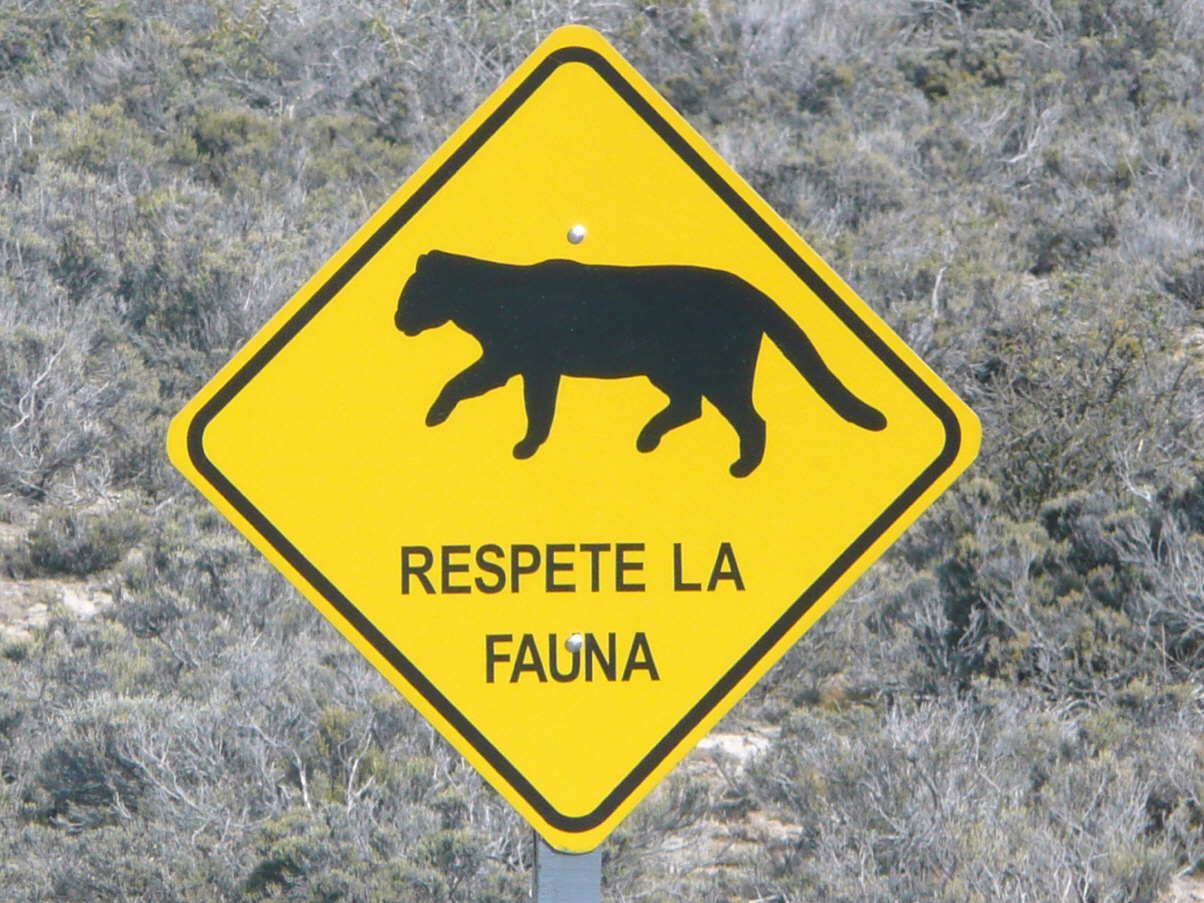 Und vielleicht sehen wir ja hier einen Puma. Es soll hier 4 Pumas und 6 Junge geben. Die Warntafel haben wir am Strassenrand gesehen und die Verhaltensregeln gelesen.