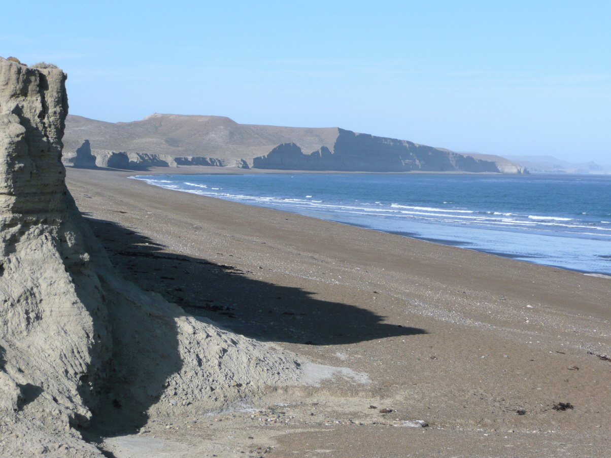 Wandern den unendlich weiten Strand entlang. Der Sand ist braun bis dunkelbraun, doch scheint er weiss zu sein. Die Lösung: alles Weisse sind Muscheln. Wir haben dies noch nie gesehen! Sammeln wie verrückt abgeschliffene Muschelplättchen – ergibt an Lederbändern schöne Geschenkhalsketten. Fahren zurück auf die Route Nr. 3, welche sehr gut ausgebaut ist. Tanken in San Antoni Queste wieder voll mit Euro-Diesel. Derselbe ist 20% teurer als der normale Diesel, aber Kaspar gönnt dem MAN den guten Diesel. Südlich von Sierra Grande kommen wir in einen neuen Staat: Chubut.