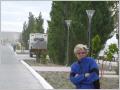 Fahren zum Cabo Dos Bahias. Hier ist wieder eine Pinguinkolonie beheimatet. Schauen uns die putzigen Tiere noch einmal an. Über zwei holprige Pisten zu Aussichtspunkten. Über Pisten weiter nach Süden nach Bahia Bustamente. Fragen, ob wir hier übernachten dürfen. Es wird uns nicht gestattet. So fahren wir halt zurück auf die Route Nr. 3 und weiter nach der Ölstadt Comodoro Rivadavia. Es weht ein fürchterlicher Sturm, der MAN schwankt und das Fahren wird echt gefährlich. Die Tankanzeige geht sehr schnell nach unten bei dem starken Gegenwind. Wir brauchen etwa 8 Liter Diesel mehr! Haben gar nicht bemerkt, dass wir auf einer Hochebene fahren. Flach, flacher, am flachsten und so geht’s ziemlich steil runter in die Stadt. Hier wirbelt es den Dreck und Abfall nur so durch die Gegend und die Stadt ist nicht gerade einladend. Laut Reiseführer soll es 12 km weiter in Rada Tilly einen Camping Municipal haben, den wir aufsuchen. Hier stehen wir zwischen den kleinen Bäumen und schaukeln – heftiger als auf dem Schiff!