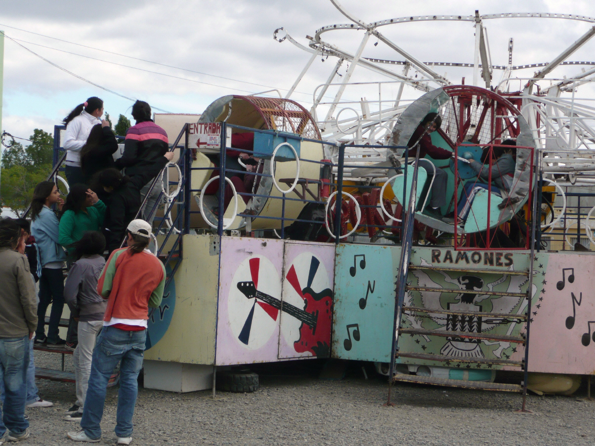 Stellen unsern Camper an den Übernachtungsplatz und gehen die 5 Blocks zu Fuss in die Stadt. Argentinische Städte sind immer quadratisch aufgebaut und wenn man nach etwas fragt, so wird immer in Anzahl Quadros (Strassenkreuzungen) erklärt. Besichtigen kurz die kleine Kathedrale (Holzkirchlein) und Bigi schaut sich die Auslage in den Läden an. Hier hat man wieder einmal das Gefühl von Zivilisation! Welch ein Wunder, es ist fast windstill. Die argentinische Jugend vergnügt sich an der Chilbi. Nun sitzen wir an der Wärme und geniessen im Camper das gute Abendessen aller noch vorhandenen Frischprodukte wie Rohschinken, Käse, Entrecote und Tomaten.