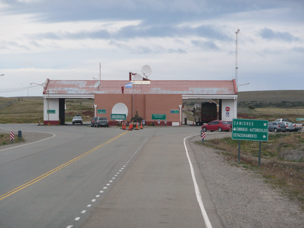 Wunderschöner Morgen und wieder fast windstill. Marschieren in die Stadt für Kaffee und Gipfeli. Auf die Route Nr. 3 Richtung chilenische Grenze. Treffen unterwegs das Franzosenpärchen mit der Katze. In Monte Aymond durch die argentinische Zollkontrolle und ein paar Kilometer weiter dann die chilenische. Das Prozedere auf beiden Seiten ist sehr einfach und die Beamten sind sehr höflich und hilfsbereit. Wir haben frische Eier bei uns, welche bei den Chilenen nicht erwünscht sind. 6 Eier werden hart gekocht und die andern 6 Eier essen wir als Rührei. Kaspar bringt den Abfall (Eierschalen) dem chilenischen Zöllner und nun winkt er uns durch. Einige Kilometer ist noch gute Betonstrasse, dann aber kommt 110 km Wellblech Schotterpiste. Es hoppert und schäppert nur so. Soeben haben wir mit der Fähre den Magellankanal überquert. Die Landschaft ist eintönig, ohne einen Strauch. Hinter uns wird eine riesige Staubfahne aufgewirbelt. Wir fahren ca. 60 km pro Stunde und wir müssen aufpassen, dass wir nicht in den Graben fahren. Hier weiden Schafe, einige Pferde und Kühe, sehen einen Fuchs und einen Biber, sonst menschenleer. Bei der Wiedereinreise in den argentinischen Staat Tierra del Fuego (Feuerland) geht alles reibungslos. Hier an der Grenze übernachten wir.