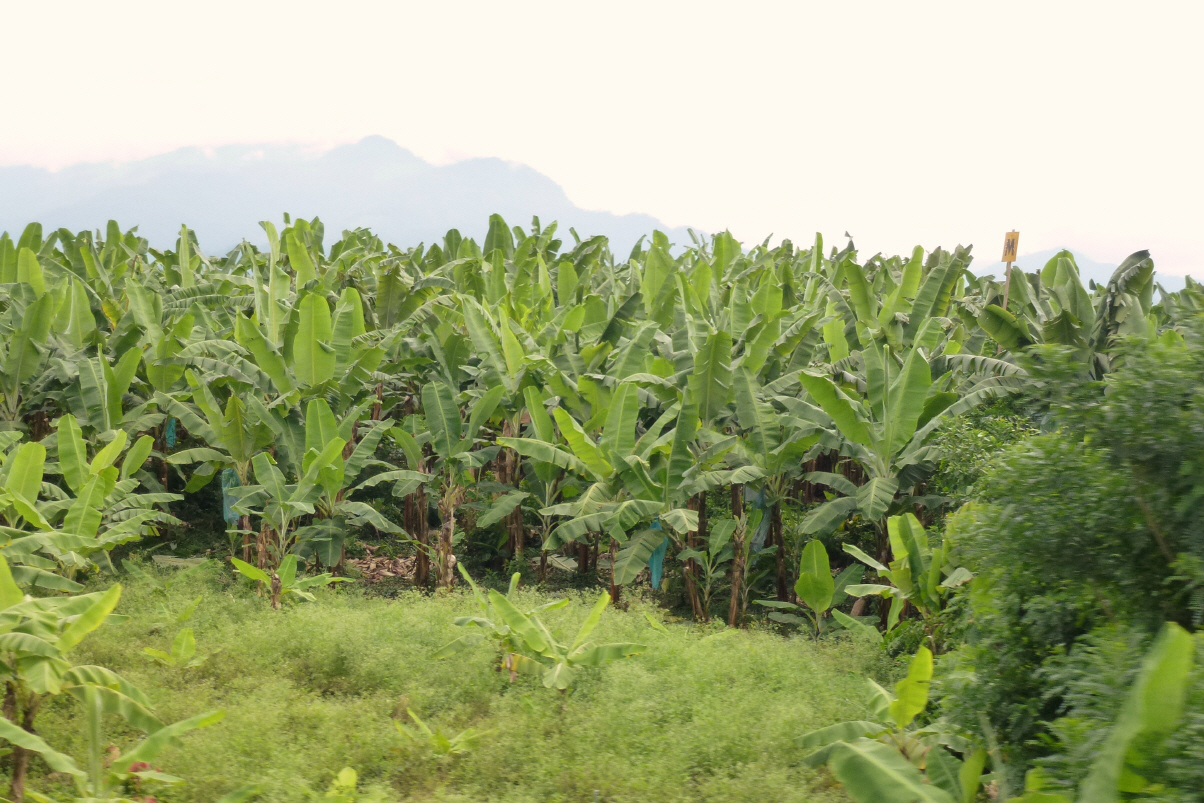 Sind relativ früh auf den Beinen. Baden, an der Aussendusche Körperpflege, Haare waschen, MAN bereitstellen und Frischwasser tanken. Alle inkl. Familie des Campingbesitzers kommen uns verabschieden. Knipsen Gruppenfotos. Monika nimmt uns noch die restlichen Soles ab, da sie noch zwei Tage in Peru bleiben. Kaspar drängt zum Aufbruch. 40 km bis zur Grenze Peru/Ecuador. Zollabfertigung Peru sehr speditiv und auch Immigration Ecuador sehr gut. Das Ausfüllen der Zollpapiere in Ecuador dauert jedoch etwas länger. Die Zöllner sehen nur selten europäische Papiere und sind daher etwas verunsichert. Die Schweizer Dokumente und Ausweise sind wohl in unseren vier Landessprachen, jedoch nicht in Spanisch! Aber wir sind zufrieden: alles in allem hat nur zwei Stunden gedauert. Auf der E25 Richtung ‚Guayaquil‘, der grössten Stadt Ecuadors. Ab der Grenze hat sich die Landschaft verändert. Sie ist grüner und subtropischer geworden. Und natürlich sehen wir die ersten Bananenplantagen mit den in Plastik eingepackten Bananenstauden. So um 1905 hat Ecuador alles auf Bananen für den Export gesetzt, bis dann der Weltmarktpreis zusammengebrochen ist. Ebenfalls sind grosse Farmen mit Kakaobohnenstauden zu sehen. Reis (viel), Mais (nicht so viel), Mangos, wenig Orangen und Erdbeeren. Wir fahren durch ein Mangrovensumpfgebiet. Viel Verkehr und es wird sehr gefährlich überholt, die Busfahrer sind richtige Kamikaze. Weil wir beim Grenzübertritt nur wenig Früchte, Gemüse und Eier versteckt mitgeführt haben, müssen wir den Vorrat am Strassenrand ergänzen. Haben kurz vor dem Einnachten einen kleinen Disput wegen des Übernachtungsplatzes – es ist schwül und heiss! Können uns dann aber doch einigen. Stehen auf einem grossen Parkplatz bei einer Hühnerfarm etwas von der Strasse zurückversetzt. Zwei Wächter mi Gewehr kommen und fordern uns auf, doch etwas näher ins Licht beim Wachthäuschen zu fahren. Wir befolgen den Rat. Vor dem Schlafen noch Mückenjagd.