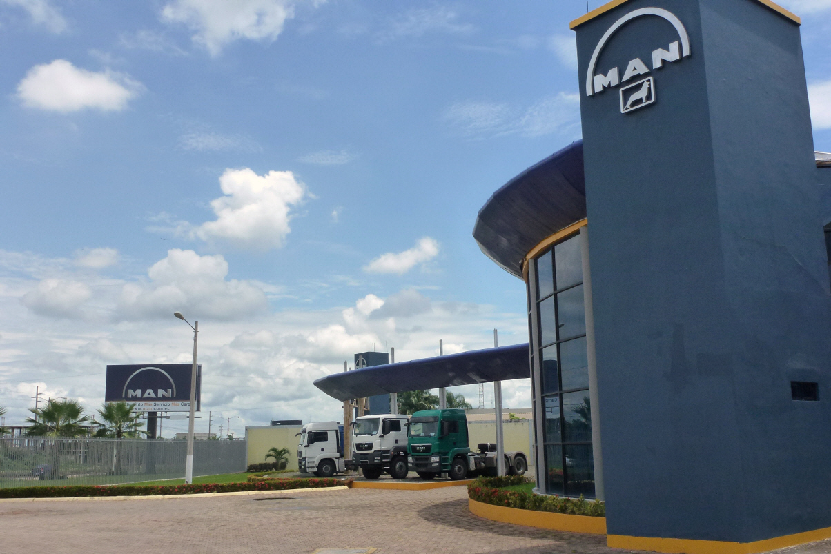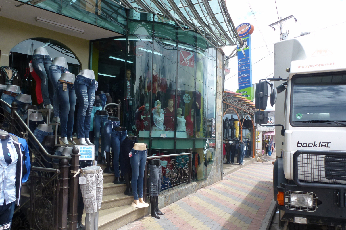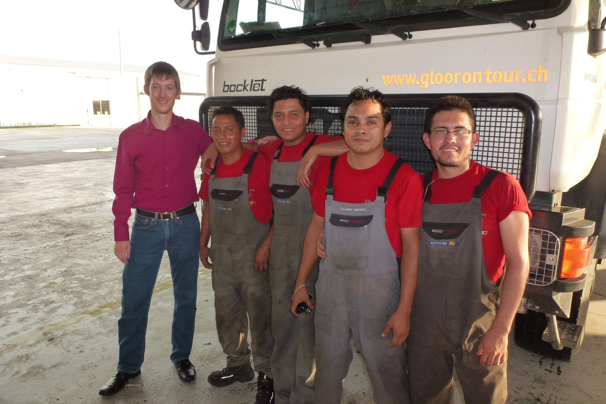 So alle zwei Stunden wird das Licht angezündet und ein, zwei Mücken werden blutig an der Wand zerdrückt. Es ist heiss, immer wieder die um den Kopf schwirrenden Mücken und der laute Strassenverkehr – wie soll man da schlafen können?! Stehen daher sehr früh auf, fahren nach ‚Guayaquil‘ und hoffen, die MAN-Werkstatt an der ‚Autopista Duran-Boliche Kilometer 3.5‘ zu finden. Und siehe da, Kaspar ruft: ‚da‘! Haben Glück gehabt, denn mit unserem Wissen vom Stadtplan im Computer wären wir viel weiter ins Zentrum gefahren. Können sofort in den leeren Hof (Werkstatt) einfahren und schon nach kurzer Zeit kommen die Arbeiter. Der techn. Leiter, der Deutsch spricht, nimmt sich des MAN’s an. Die Arbeiten gehen zügig voran. Ersatzteile, welche Kaspar hier als Standard angenommen hat, sind nicht vorhanden (z.B. Keilriemen). Auch den Luftfilter haben sie nicht. Wir fahren anscheinend seit tausenden von Kilometern drei falsche Luftfilter in der Gegend herum - Kaspar ist echt sauer auf MAN in Deutschland! Das EDC-Problem ist lokalisiert. Irgendein Widerstand funktioniert nicht richtig. Morgen noch Ventile einstellen und dann werden wir sehen, ob das EDC-Problem behoben ist. Bigi putzt mit halb vertrockneten WC-Feuchttüchlein den Boden – echt gut, kein Sandkorn mehr! Spazieren zum nahegelegenen neuen, grossen Einkaufszentrum. Essen bei KFC ein Fastfood-Menu. Für 25 Dollar kleiden wir uns neu ein: Bikini und Badehose. Nachher muss die Verkäuferin den ganzen Laden wischen – unsere Schuhe waren so schmutzig vom Matsch am Strassenrand. Uf, in der Schweiz wäre das sehr peinlich! Ziehen bei der Bank noch Dollars, da MAN die Reparatur nur gegen Bargeld ausführt.
