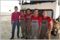 Monika und Bigi suchen mit dem Taxi eine Wäscherei und gehen ins Internetkaffee. Wolfgang und Kaspar beaufsichtigen das Fortschreiten der Arbeiten. Der Polyesterspezialist ist hier und es scheint eine anständige Reparatur zu geben. Und tatsächlich, die Reparatur ist innert einem Tag gut gelungen und kostet lediglich US$ 209.20 - auch sagt keiner mehr etwas von 10 Dollar/Tag Übernachtungsgebühr.