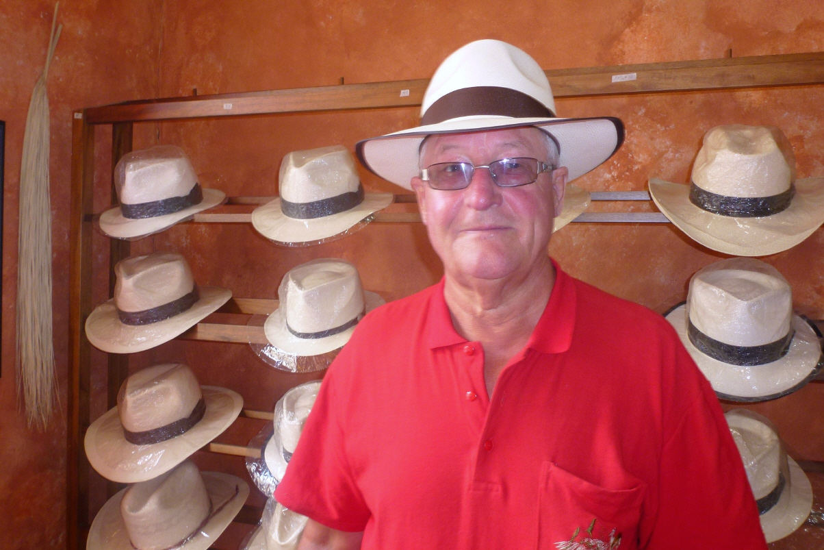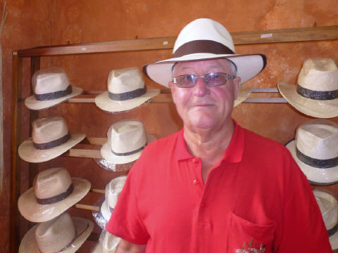 Gerade ein Kilometer um die Ecke ist eine Wäscherei. Bummeln Richtung Innenstadt. Zuerst aber für Kaspar das Wichtigste: Haare schneiden! Kaspar überschwatzt Bigi auch für einen neuen Haarschnitt. Sie ist nicht ganz zufrieden mit den Fransen. Telefonieren noch nach Hause. Wir können vom Handy keine SMS schicken, nur empfangen. Besuchen das Museo ‚Sombrero‘ und treffen dort auf die Leute der ‚Seabridge‘-Gruppe. Probieren verschiedene Panamahüte, aber Keiner ‚haut uns aus den Socken‘. Ist Massenware. Am Hauptplatz besuchen wir die neue (1885) und alte (1557) Kathedrale. ‚Cuenca‘ und überhaupt Ecuador ist sehr sauber, alles sehr gepflegt, die Häuser qualitativ relativ gut gebaut. In einem schönen Kolonialstil Restaurant essen wir guten Fisch. Im Touristenbüro empfehlen sie uns den Panamahut-Laden ‚Som Val‘. Kaspars Wunsch soll in Erfüllung gehen: er steht da mit einem feinen und teuren Panama-Hut (240 Dollar). Bigi findet für sich nichts Passendes. Inzwischen sind auch Lucette und Dirk sowie Monika und Wolfgang eingetroffen.