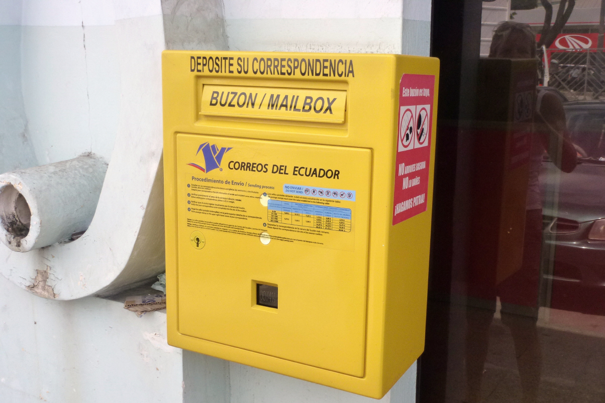 Dann Einwurf in einen gelben, alten, Schweizer Briefkasten - alle alten Briefkästen wurden Ecuador von der Schweiz 2011 geschenkt! Müssen um 17 Uhr spätestens bei Mercedes sein um die Rechnung zu begleichen.