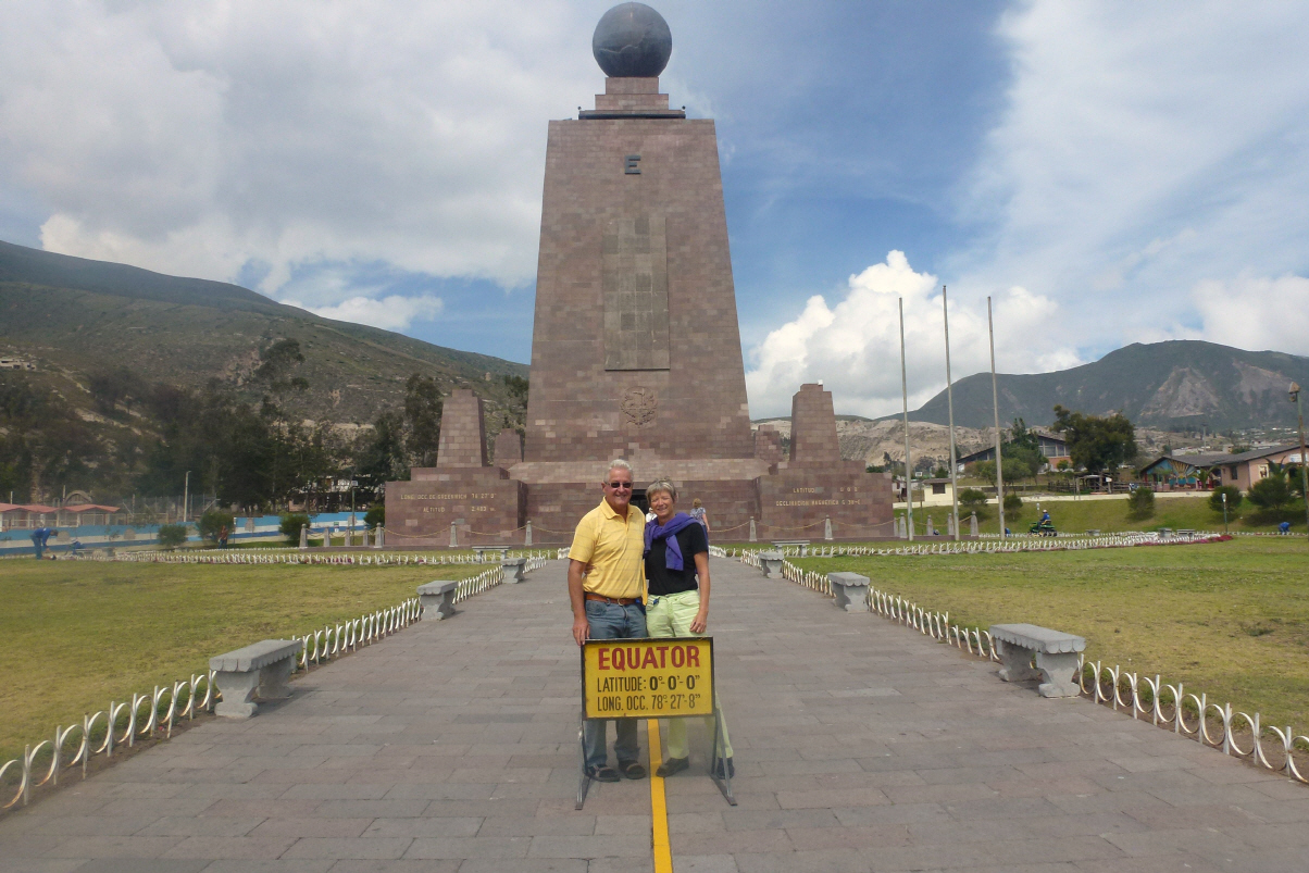 Leider verhüllt sich auch heute der Vulkan ‚Cotopaxi‘ in den Wolken. Müssen quer resp. längs durch ‚Quito‘, aber dieses Mal auf der Ostumfahrung – im Morgenverkehr, einige Baustellen, viel ‚Drängeln‘, Geduld, immer schön brav auf der ‚Panamericana Norte‘ - und dann 20 km westlich zum Museum ‚Mitad del Mundo‘ mit Aussichtsturm und touristischem Dorf. Infolge falscher Vermessung steht das Museum 260 m neben der Äquatorlinie, wissen jedoch nicht auf welche Seite.