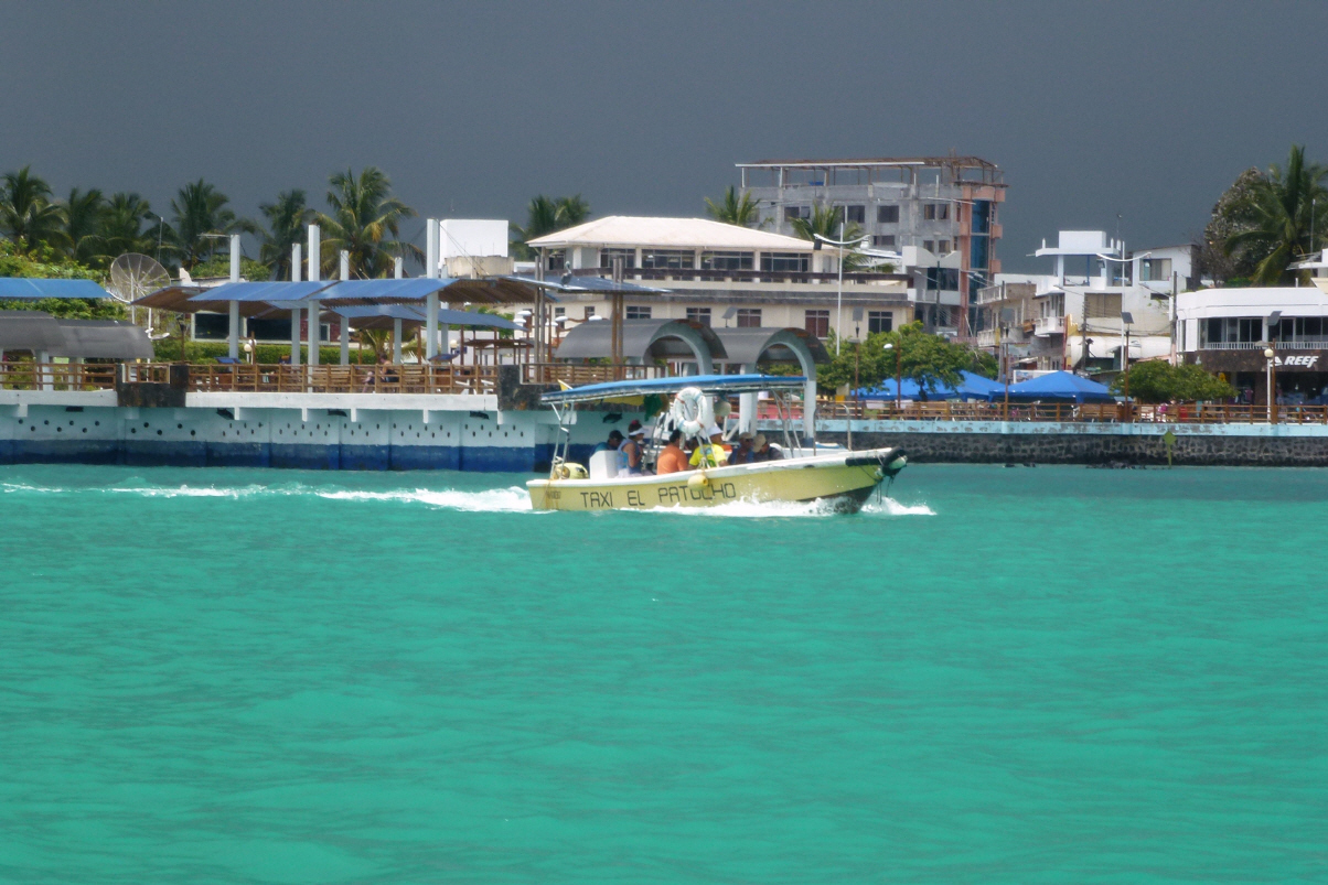 Früh aufstehen, denn wir müssen schon um 06.30 Uhr auf dem Flughafen in Quito sein. Uns wurde gesagt, dass es hier immer ein grösseres Chaos beim Ein-Checken gibt. Heute aber nicht und so müssen wir auf den Abflug um 08.30 Uhr ziemlich lange warten. Zwischenlandung in ‚Guayaquil‘ um aufzutanken. Nun weitere tausend Kilometer bis zu der Inselgruppe ‚Galapagos‘. Bei der Ankunft muss jeder 100 US$ Nationalpark-Gebühr bezahlen. Der Taxifahrer des Hotels ‚Mainao‘ erwartet uns bei der Ankunft.