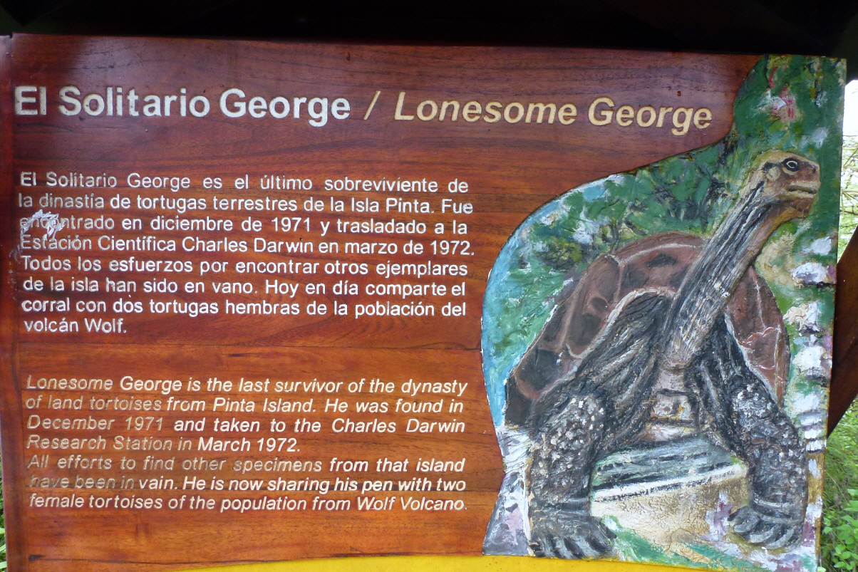 ‚Lonely George‘ ist der letzte seiner Gattung von der ‚Isla Pinta‘. Seit 30 Jahren hofft man auf Nachwuchs. Jetzt hat man endlich gemerkt, dass er sich nicht mit Weibchen einer fremden Insel paaren lässt. Seit kurzem versucht man es DAN-ähnlichen Weibchen der ‚Isla San Cristobal‘.