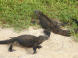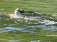 Aber zuerst mit dem Bus eine kurze Strecke mit dem Bus zum Kanal und Übersetzten mit einer kleinen Fähre zur ‚Isla Santa Cruz‘. Quer über die Insel bis zum Hauptort ‚Puerto Ayora‘. Hotelzimmer beziehen und sofort in der grössten, schwülen Hitze zu Fuss los zur ‚Tortuga Bay‘. Hier sehen wir die ersten urtümlichen Leguane, aber Schildkröten lassen sich nicht blicken. Baden wir in einer ruhigen, warmen Bucht mit äusserst feinem, weissem Sand. Abends stürzen wir uns ins ‚Nightlife‘, so richtig touristisch und streifen durch die vielen Souvenirläden.