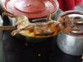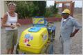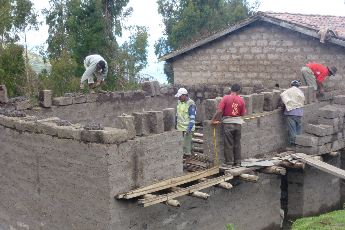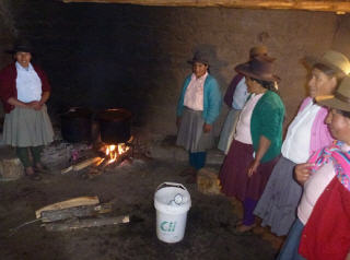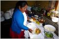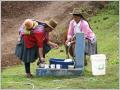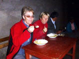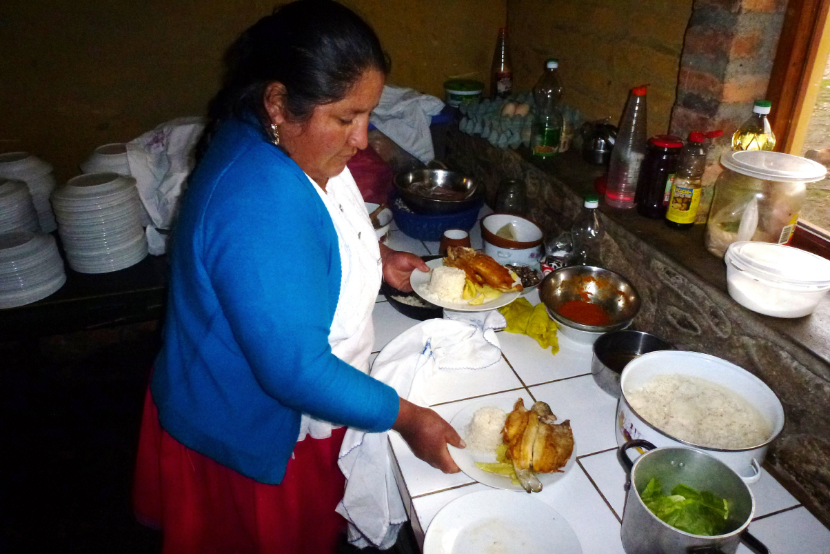 Bei der Kirche sind Freiwillige inklusive Pastor und Co-Pastor am Bau eines Nebengebäudes beschäftigt. In der Gemeinschaftsküche (kleines Haus mit Feuerstelle) kochen sechs Frauen das Mittagessen. Wir erhalten einen Becher zuckersüssen Tee und ein Brötchen. Später werden wir noch zum Mittagessen eingeladen. Kaspar rümpft etwas die Nase, aber Bigi und Regula sind begeistert. Sitzen noch etwas draussen und unterhalten uns mit Adrian. Nun erhält jeder einen vollgeschöpften Suppenteller: Kartoffelstücke und Bohnen an Sauce, Reis und dazu kleine Tomatenstücke, Zwiebeln und etwas scharfen Peperoni. War gar nicht schlecht, aber die Portion riesig und Bigi kann mit allem Anstand nicht alles aufessen. In ‚Abancay‘ wohnt Adrian. Er lädt uns noch in sein Haus auf ein Glas Mineralwasser ein. Sein Hund knurrt und im Hinterhof steht ein Stall mit Meerschweinchen (Delikatesse in Peru). Geben ihm einen Sack voll Geschenke für die Kirchen und eine Spende für ‚wo es am nötigsten ist‘. Verabschieden uns von ihm und die Fahrt geht weiter über kurvige, aber gute Strasse ein Flusstal hinauf. Vor uns liegen noch zwei Pässe von 4300 m bis zum Pazifik. Wollen aber nicht mehr in der grossen Höhe übernachten und bleiben heute unten im Tal mit Ausblick auf den reissenden Fluss bei ‚Chalhuace‘.