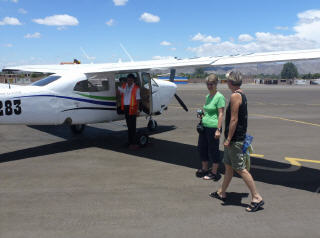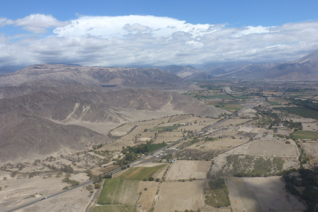 Nach einem Gräberfrühstück sofort zum Flugplatz von ‚Nazca‘. Ohne lange Gegenofferten zu prüfen buchen wir gleich einen Rundflug über die Scharrfiguren von ‚Nazca‘ für 12 Uhr. Haben somit freie Zeit und fahren in die Stadt zum einkaufen. Regula und Kaspar ist es so ein wenig schlecht, vermutlich von der Hitze (29 C). Um 11.30 Uhr Einchecken. Wie auf einem internationalen Flughafen mit Boardingkarte, Sicherheitsschleuse und unbequemem Warteraum bei den zwei Gates resp. Türen. Die vierplätzige Cessna steht bereit und wir steigen mit etwas gemischten Gefühlen ein. Es geht los und bereits nach 5 Minuten können wir die Scharrfigur ‚Trompete‘ sehen. Der Pilot kurvt immer einmal rechts und dann links um die Figuren, damit jeder fotografieren kann. Die Maschine hopst und schüttelt in der Luft. Wir können fast alle Figurenbestaunen: Papagei, Astronaut, Affe, Kolibri, Condor, Spinne, Baum und Hände. Kaspar fotografiert ins Blaue in der Hoffnung, einige Figuren erwischt zu haben. Kurz vor dem Rückflug wird es Bigi so richtig schlecht. Nur mit Glück und einem Trawellwell-Kaugummi gibt es keine Sauerei. Zurück im Camper müssen wir uns alle zuerst erholen.