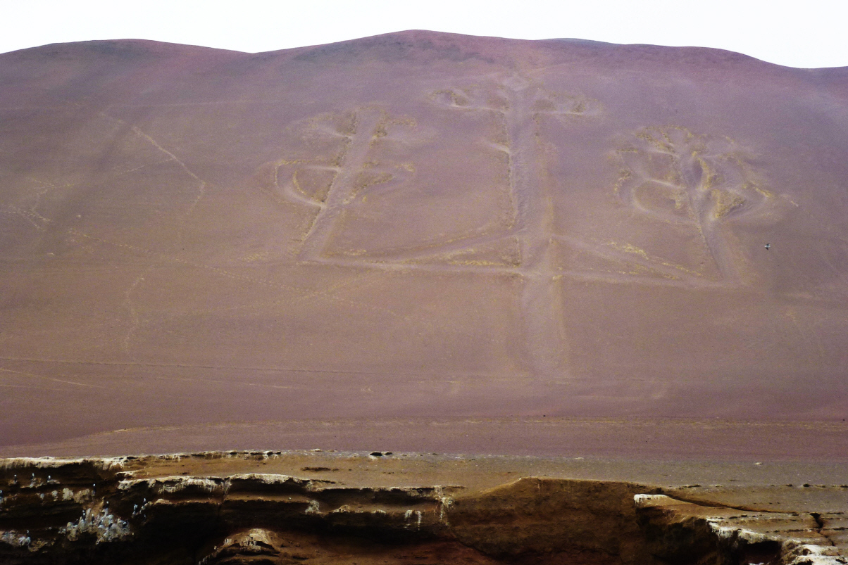 Um halb acht warten wir am Schiffsanleger mit vielen Touristen für die Fahrt zu den ‚Islas Balletas‘. Müssen in Zweierreihe anstehen fürs Boot. Zuerst fahren wir am Scharrbild ‚Kandelaber‘ vorbei. Dieses Scharrbild kann man nur vom Meer aus betrachten. Einer Legende nach ein Fussabdruck der Ausserirdischen auf dem Weg nach ‚Nazca‘.