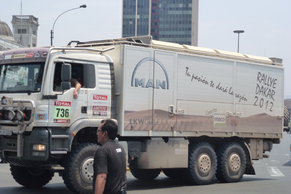 MAN bereitstellen um hinausfahren zu können. Beim Bezahlen sagen nun die Hotelangestellten, dass wir doch bis zum Abend bleiben können. Also alles im grünen Bereich. Um 12 Uhr fahren wir mit dem Taxi in die Innenstadt um einen Blick auf die Zieleinfahrt resp. Ehrenrunde des ‚Dakar Rally‘ zu erhaschen.