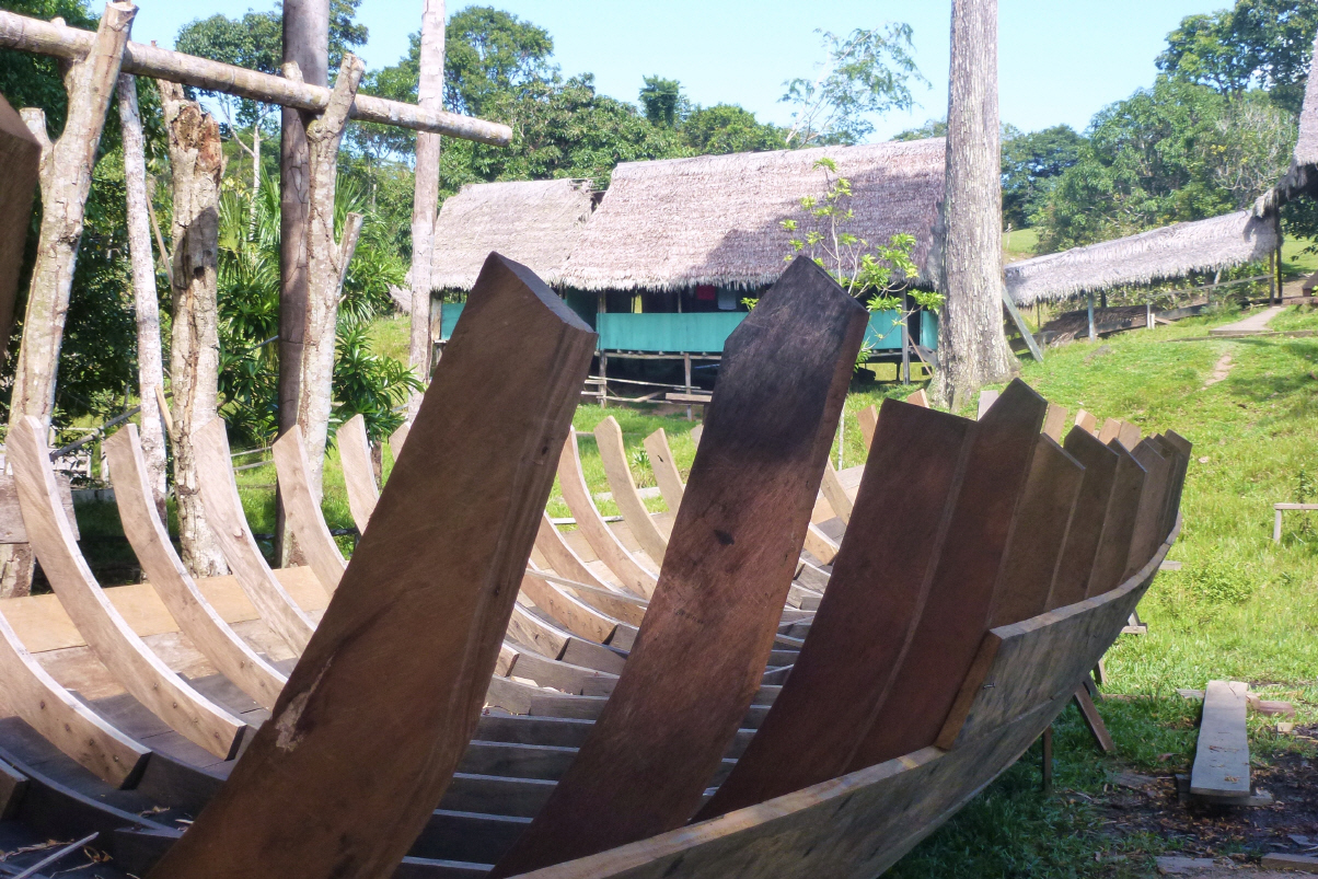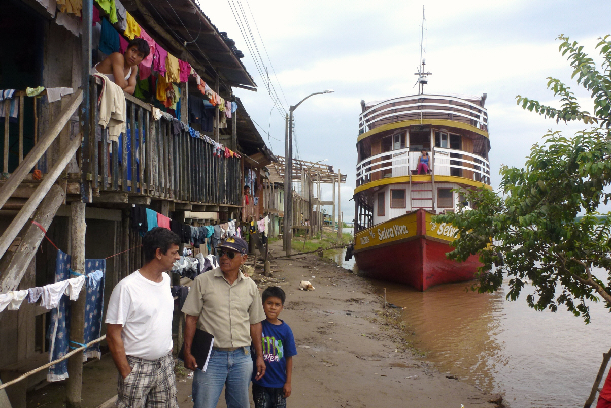Besuchen eine Schiffswerft im Urwald. Hier werden die traditionellen Boote für den Amazonas geschreinert. Für ein grosses zweistöckiges Boot von zwanzig Metern brauchen acht Mann 30 Arbeitstage. Kostenpunkt so etwa 35‘000 Soles (CHF 13‘000.-). Es hält ohne grössere Reparaturen ca. 8 Jahre. Die Boote werden vielfach hoffnungslos überladen und so sind Unglücke mit vielen Toten gar nicht selten. Der Wasserstand des Amazonas ist zur Zeit extrem hoch, wie noch selten. Die Regenzeit hat erst begonnen und dauert noch bis Ende April. Die Flussanwohner fürchten um ihre Ernten. Noch ein Meter höher und die Katastrophe ist da!