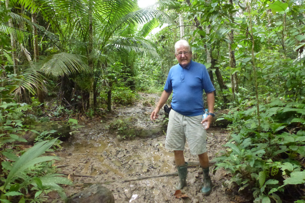 Bigi schmiert Mückenmittel ein, denn nach dem Frühstück geht es auf eine Urwald-Wanderung. Wir stapfen durch den knöcheltiefen Morast und finden es gar nicht sooo schön. Sehen die bis 3 cm grossen ‚Giant Ameisen‘, tropische Blumen, Farne und Bananenstauden.