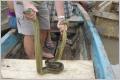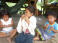 Die Dorfbewohner am Ufer zeigen uns ihre Haustiere: Hunde, Katzen, Schweine, Enten, Hühner mit Küken, eine Boa (Schlange) und eine schreckliche, steinzeitlich aussehende Wasserschildkröte.
