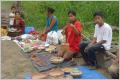 Heute ist extra für uns Handarbeitsmarkt. Schon früh werden die grossen Taschen herangetragen. Bigi geht zuerst nochmals schnell in den Dorfladen um die Vorrat an Bonbons aufzukaufen.