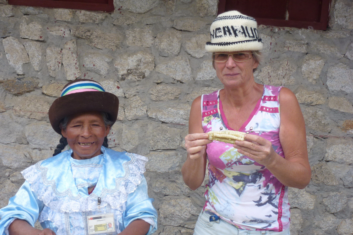 Höhenunterschied ‚Yunguy‘ 2500 m – Lagunen 3800 m.ü.M. Am Parkeingang bezahlen wir die 5 Soles Eintritt, essen einen gekochten Maiskolben mit scharfer Sauce und Bigi kauft einen weissen, gehäkelten Hut. Die Frau ist überglücklich – alles zusammen so 3 Franken und sie kann wieder häkeln! Oben an der ersten Lagune machen wir einen Spaziergang. Schöne Picknickplätze direkt am Wasser, ein paar Ruderboote warten auf Kunden. Fantastische Aussicht. Auf das Tagesmenu 'Meerschweinchen' verzichten wir.