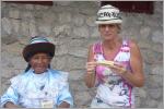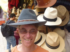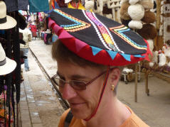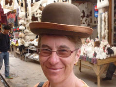 Einige Leute sind speziell schön gekleidet und lassn sich für ein Trinkgeld von den vielen Touristen gern fotografieren. Mit diesem verdienten Geld am Sonntag leben sie dann wieder einige Zeit. Gross einkaufen, der Monat hat ja erst begonnen! Bigi erhält einen Silber-Halsreif mit einem farbigen Kolibri, Kaspar eine Alpacajacke und Pullover. Regula kauft Filzhut (unten links), Spiel und Ohrringe.
