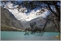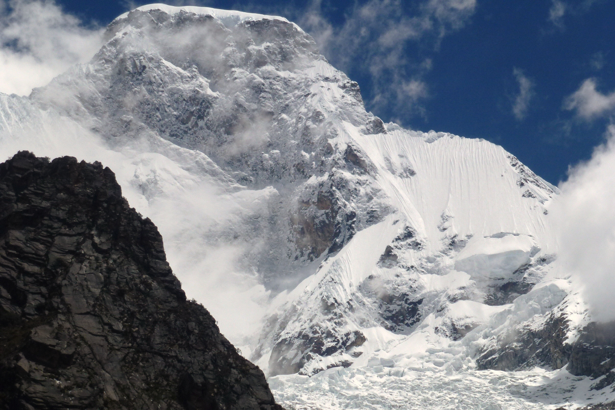 Fahren der Lagune entlang und treffen wieder auf Ingrid und Jörg. Sie haben einen guten Fotoshootingplatz um den ‚Huascaran‘ von hinten zu fotografieren. Unterhalten uns und schauen immer, ob die Wolkenresten verschwinden. Weiter zur zweiten Lagune, wo wir beschliessen ein Stück die schmale und kurvige Passstrasse rauf zu laufen (Passhöhe ‚Llimpica‘ 4900 m!). Nach einer Stunde öffnet sich das Tal und lässt den Blick auf weitere riesige Felsmassive mit grossen Gletschern frei. Wir sind fasziniert! Kaspar knipst wie wild bis die Fotobatterie leer ist. Über den Pass fahren Taxis, Kleinbusse, Reisebusse, Lastwagen und private PWs. Der Zustand und die Breite der Strasse ist unvorstellbar. Alle Busse sind überbelegt. Zwei Lastwagen können nur mit grösster Mühe kreuzen. Wir sind froh, den Camper unten stehen gelassen zu haben.