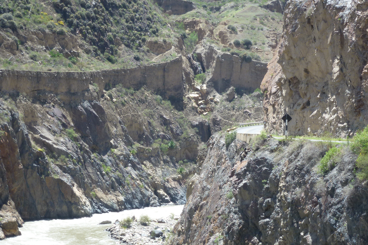 Nach dem Frühstück in der Sonne fahren wir mit 20 km/h gut 90 Minuten ins Tal. Unten sind wir so durchgeschüttelt, dass wir unsere Idee, mit dem Taxi zwei Stunden zu einer anderen Lagune hoch zu fahren, verwerfen. Genug Schüttel und Rüttel. Also fahren wir bis zum Eingang der Entenschlucht.
