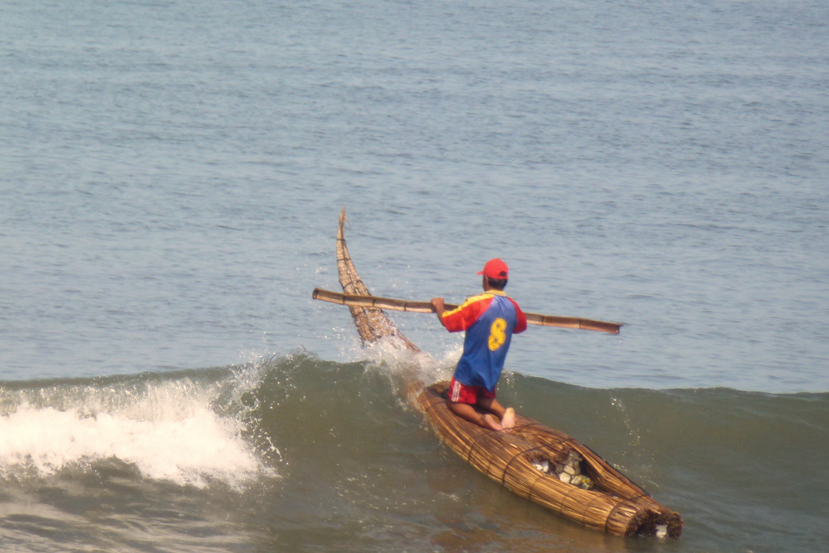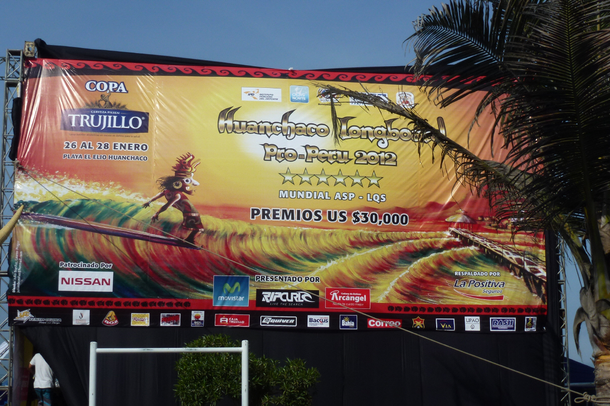 Diese Nacht ist etwas laut – schlagen und tosen der Pazifikwellen vor unserem Fenster. Spaziergang am Meer ins Dorf, wo wir in einer Bäckerei Frühstücken – ein wenig Ferienfeeling! Hier ist über das Wochenende ein internationaler Surf-Wettkampf mit 30‘000 Dollar Preisgeld. Einige Freaks sind schon hier. Die Ausgrabungsstätte ‚Chan Chan‘ steht auf dem Programm. An der Abzweigung steht ein Taxichauffeur und sagt uns, dass die Anlage sowie das Museum bis Mittag geschlossen sind – ein amerikanischer Gouverneur wird erwartet. Also verschieben wir die Besichtigung auf den Nachmittag. Die Alternative ist der Sonnen- und Mond-Tempel (Huanca del Sol y del Luna) auf der anderen Seite der Grossstadt. Dieses Mal nehmen wir die Umfahrungsstrasse. Der Ruinenkomplex der ‚Moches‘ (Vor-Inka) ist riesig. Nur der 5-stöckige Mondtempel mit seinen farbigen Reliefs kann mit einem Führer besucht werden. Es wird seit 1991 ausgegraben und es kann noch einige Jahrzehnte ’gesändelet‘ werden. Der Sonnentempel liegt noch unter Sand. Es fehlt das Geld für die Ausgrabung. Naja, wir können uns nicht allzu viel bei diesen Steinhaufen vorstellen.