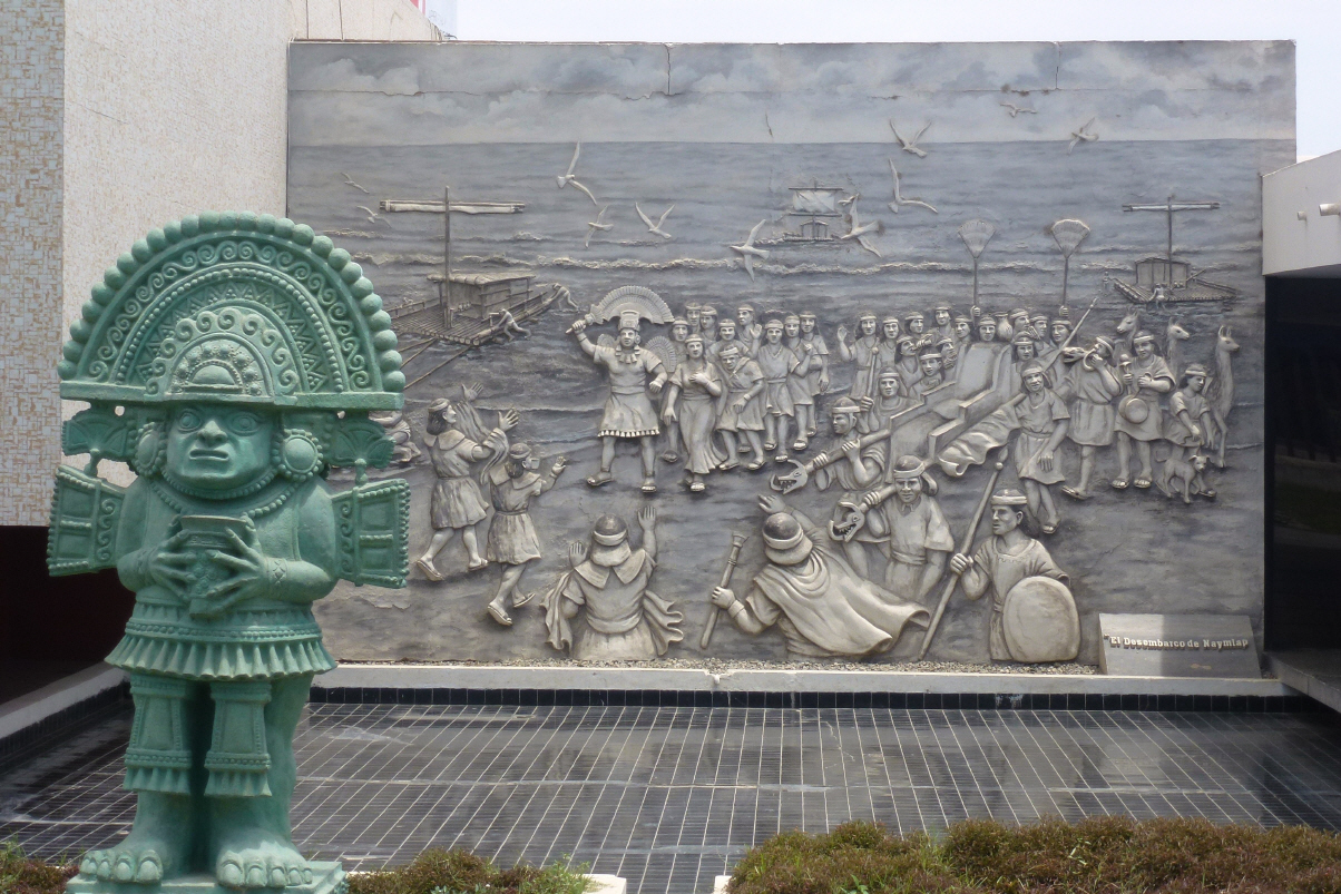 An der Strandpromenade sind die Vorbereitungen für den Surf-Wettkampf in vollem Gange. Die tätowierten Surfer laufen mit wichtigem Gehabe und stolz geschwollener Brust dem Strand entlang. Die Surferinnen dagegen bereiten sich mit Jogging sportlich vor. Packen den Computer unter den Arm und begeben uns zu Monika und Wolfgang in den Hotelgarten. Bigi lädt die Email herunter und kopiert einige Fotos vom Amazonastrip. Schwatzen. Die Zeit vergeht schnell und mittags verabschieden wir uns. Wir wollen heute weiter fahren. Tanken und dann der Küste entlang nach ‚Chiclayo‘. Im Dorf ‚Guadeloupe‘ wollen wir die koloniale Kirche mit den schönen Wandmalereien anschauen. Trotz LKW-Verbot fahren wir in die Stadt hinein. Prompt bleiben wir in einer Gasse wegen eines parkierten PWs stecken. Hupen. Jemand zeigt uns das Haus in welchem der Fahrer wohnt. Nach einiger Zeit erscheint er und parkiert um. Wir können nun langsam wegen tiefhängender elektrischer Drähte weiterfahren. In der Kirche ist gerade eine Beerdigung und so fahren wir unverrichteter Dinge auf die ‚Panamericana Norte‘. Unterwegs immer wieder grüne fruchtbare Oasen. Durchqueren eine hundert Kilometer lange Wüste. ‚Chiclayo‘ berühren wir nur am Rande, denn wir wollen noch zu den archäologischen Ausgrabungen ‚Sipan‘. Die letzten 20 Kilometer sind sehr schlecht. Endlich finden wir das kleine, neue Museum. Nach der polizeilichen Registrierung dürfen wir vor dem Museum auf dem grossen Parkplatz übernachten.