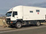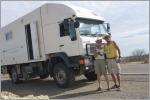 Der MAN ist ohne grössere Probleme 100‘000 Kilometer gefahren! Bei Kilometer 99‘999,9 stoppen wir, machen Fotos und ‚klöpfen‘ den Champagner. Nur ein Gläschen, denn es ist echt zu heiss und wir wollen ja nicht hier am Strassenrand in der Wüste campieren. Wir sind dankbar, dass wir als Team ‚gloorontour‘ schon soweit reisen konnten. Ausser zwei Schäden beim manövrieren, ein paar Kratzer aussen, Hicks im Wohnraumboden und Kästchen, fast keine Flecken auf dem Polster, ist unser ‚Bocklet‘-Wohnmobil ‚wie neu‘! In ‚Manorca‘ treffen wir wieder auf Monika und Wolfgang. Sie haben sich den Übernachtungstipp angeschaut, leider nichts. Überhaupt steht ja auch im Reiseführer: ein Ort für ‚junge‘ Leute und Aussteiger, für ältere Reisende nicht unbedingt schön. Was denkt ihr denn, was wir sind?! Wir fahren zusammen und suchen, suchen - sind heute schon 450 km gefahren! Endlich finden wir einen schönen, etwas erhöhten Strandplatz. Geniessen ein Bad in den grossen Wellen des Pazifik und dann müssen wir noch unseren Champagner trinken (abgefüllt in Peru, importiert aus Spanien) und dazu gibt’s chilenischen Lachs und Spargelspitzen aus der Dose (meistens aus China) - echt internationale Küche! Das Meer tost und auf der Strasse oben gibt’s immer mehr lauten Verkehr. Mal sehen was die Nacht bringt.