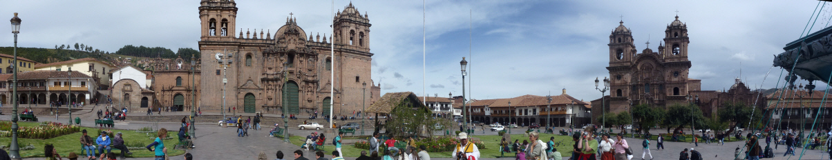 In der Nacht hat es stark geregnet – unser Bett ist jedoch trocken! Mit dem Taxi zum Hauptplatz. Hier besuchen wir die grosse, schöne, barocke, mit Silber und Gold geschmückte Kathedrale mit ihren zwei Nebenkirchen. Es glänzt und funkelt nur so. Hier wurde an Kunst und Reichtum nicht gespart. Mit dem Audioguide werden wir durch die Kirchen geführt - beeindruckend! Mit dem ‚Tranvia‘ (altes Cusco-Tram auf einem Hyundai-Lastwagen aufgebaut) kreuz und quer durch die Stadt.