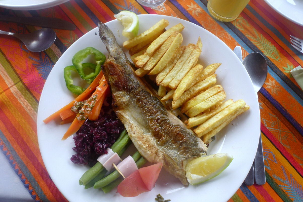 Leider ist das Wetter und daher die Sicht auf den Vulkan ‚Cotacachi‘ schlecht. Im Reiseführer rühmen sie die Forelle der Hosteria am See. Uns schmeckt sie auch.