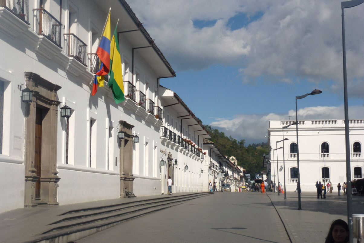 Der Hauptplatz ist mit 14‘000 cm3 wohl der Grösste in Südamerika. In der Mitte steht nur ein Brunnen. Alle wichtigen Häuser sind wie immer um den Hauptplatz gruppiert. Kopfsteinpflaster überall und schön anzusehen, aber schlecht für hohe Absätze und Gehbehinderte. Geniessen einen feinen kolumbianischen Espresso mit Patisserie und später Pizza. Lassen das Städtchen auf uns wirken. Heute einmal kein Stress mit Autofahren! Der Himmel bedeckt sich mit dunklen Wolken. Gehen zurück zum Camping und lassen den Tag ausklingen beim Lesen, Homepage erstellen, Fingernägel schneiden und Feinwäsche machen.