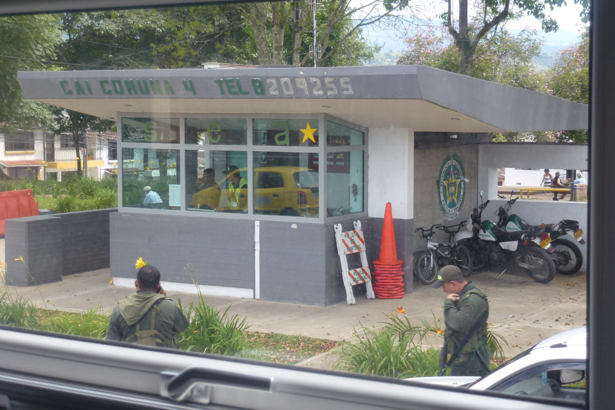 In ‚Popayan‘ finden wir auf Anhieb einen sehr schmutzigen 24-Stunden Parkplatz gleich neben dem Busbahnhof. Kaspar will hier nicht übernachten, also weiter ins Zentrum. Claro, durch die engen Strassen der Altstadt. Als wir nicht mehr weiter wissen, fragen wir bei einer Polizeistation und wir dürfen gleich davor für eine Nacht auf der Strasse parkieren. Sind also gut bewacht.