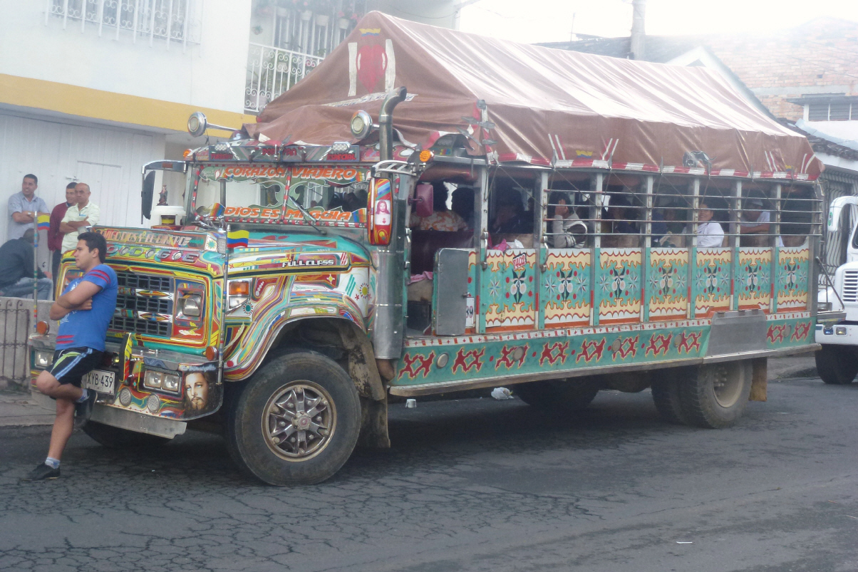 Schon den zweiten Tag bis 18 Uhr gefahren und um 19 Uhr ist stockdunkel! ‚Proscht nägeli‘, wenn die Fahrt durch ganz Kolumbien so wird! Hier in Kolumbien sieht man noch einige Pferdekarren, Pferd mit Reiter und Lasso. Auch hängen die Velofahrer den LWSs hinten an, um ohne Muskelkraft den Berg rauf zu kommen – anno 1950 in der Schweiz. Am Strassenrand werden exotische Früchte angeboten. In Kolumbien gibt es ca. 15 % Schwarze, viele hier im Süden. Alles Nachkommen der ehemaligen afrikanischen Sklaven.